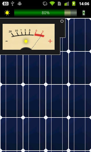 Overview: Go green! Charge your phone with the power of the sun! Start this application, put your phone in a well lit place and watch your battery charge using the solar panel.